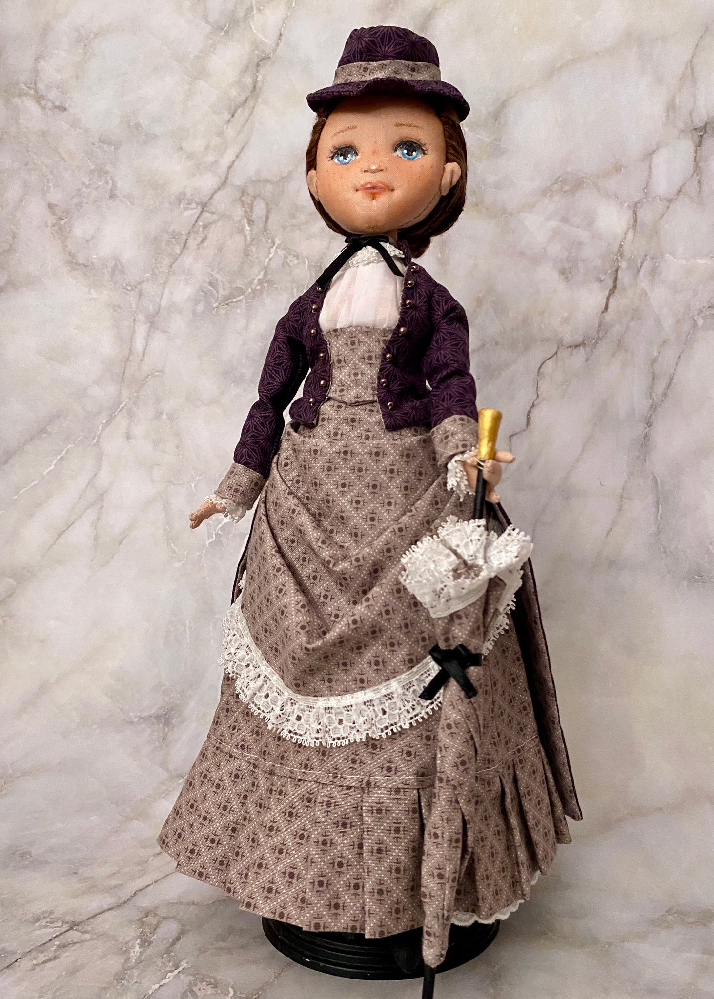 Doll body, dress, hat, and parasol patterns included